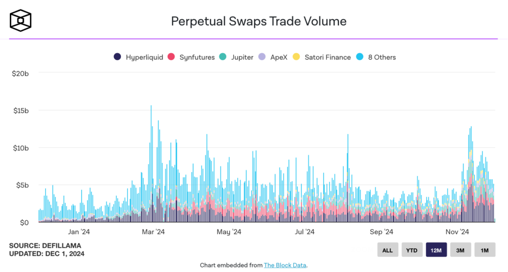 هایپر لیکویید در ماه اکتبر به پلتفرم پیشرو در معاملات غیرمتمرکز پرپچوال – از نظر حجم معاملات – تبدیل شد و دیروز با تصاحب ۴۷٪ از کل حجم این معاملات، جایگاه خود را مستحکم کرد.