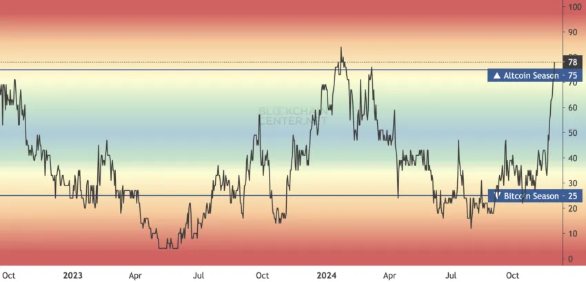 در سمت مقابل، رسیدن این شاخص به امتیاز ۷۵ یا بالاتر نشاندهنده آغاز آلت سیزن خواهد بود. در حال حاضر این شاخص به امتیاز ۷۸ رسیده و این از احتمال آغاز آلت سیزن در هفتههای پیش رو خبر میدهد.