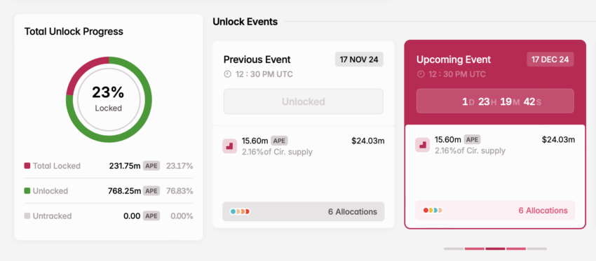 در گذشته معمولا پس از آنلاکهای بزرگ شاهد کاهش قیمت ایپ کوین بودهایم. با این حال، افزایش علاقه سرمایهگذاران به NFTها ممکن است این بار از ریزش قیمت جلوگیری کند.