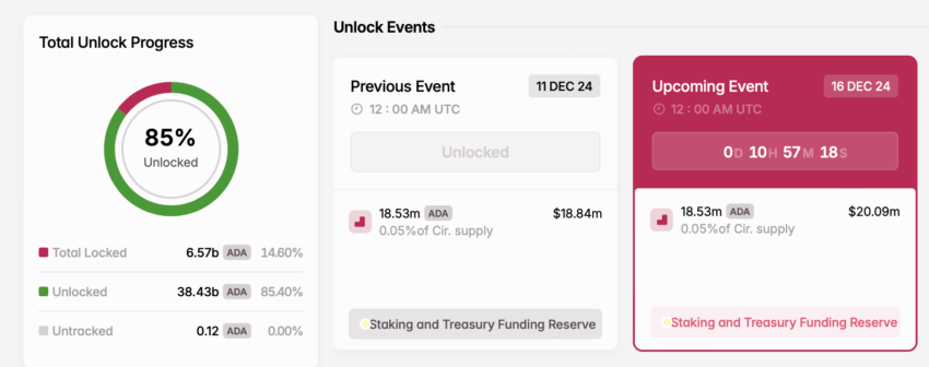 بلاکچین کاردانو به دلیل تمرکزش روی ثبات، امنیت و مقیاسپذیری معروف است. این پروژه قرار است در تاریخ ۱۶ دسامبر بیش از ۱۸ میلیون توکن ADA که به استیکینگ و ذخایر خزانه مربوطند را آنلاک کند.