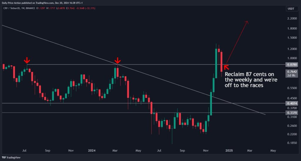 تحلیل نمودار قیمت کرو (CRV) – منبع: حساب Justin Bennett در X
