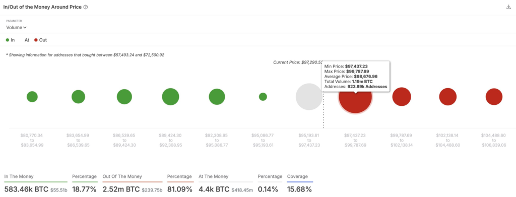 مارتینز خاطرنشان کرد که حدود ۹۲۳،۸۹۰ آدرس کیف پول در این محدوده قیمتی، بیش از ۱.۱۹ میلیون بیت کوین خریداری کردهاند. این منطقه قیمتی به عنوان یک سطح مقاومت مهم عمل میکند زیرا بسیاری از هولدرهای بیت کوین ممکن است به دنبال فروش و رسیدن به نقطه سربهسر باشند که میتواند فشار فروش ایجاد کند.