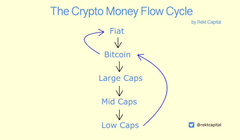 چرخه جریان پول در بازار کریپتو – منبع: Rekt Capital