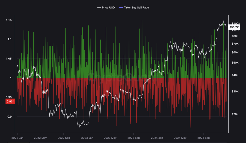 نسبت خرید به فروش تیکر (Taker-Buy-Sell-Ratio) به زیر ۱ کاهش مییابد