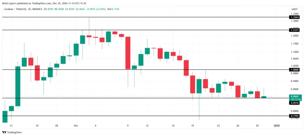 همزمانی نشست سالانه اعضای کاردانو با آغاز سال جدید، میتواند انگیزه لازم برای بازپسگیری سطح ۱.۰۰ دلار را فراهم کند. در حال حاضر، کاردانو بالاتر از سطح حمایتی ۰.۸۵ دلار قرار داشته و بسته به احساسات بازار و نتایج این نشست، میتواند برای بهبود آماده شود.