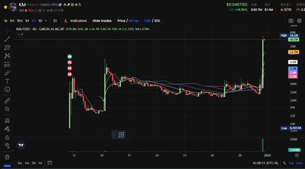 دادههای GMGN.AI نشان میدهد محبوبیت میم ککیوس ماکسیموس (Kekius Maximus) در کمتر از یک ساعت، بر بازار میم کوینها تسلط یافته است.