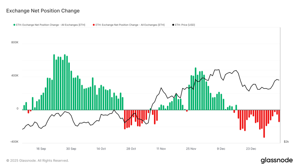 میزان خالص پوزیشنهای اتریوم در صرافیها (خرید/فروش) – منبع: GlassNode