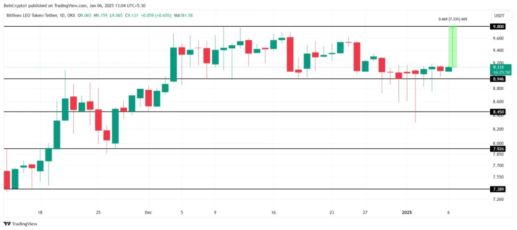 آلت کوین LEO توانسته با حفظ قیمت بالای ۸.۹۴ دلار برای چندین روز، ثبات خود را حفظ کند. این ثبات، لئو را در فاصله ۷.۳٪ از ثبت یک ATH جدید قرار داده و سرمایهگذاران با دقت این سطوح را زیر نظر دارند، زیرا احتمال شکست مقاومت افزایش یافته است.