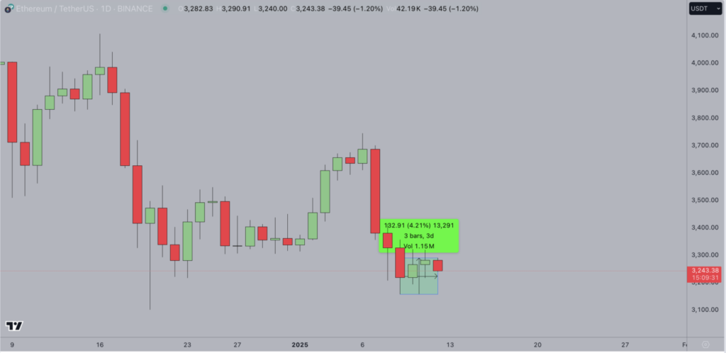 در نتیجه، قیمت اتریوم افزایش یافته و در زمان نگارش، به ۳,۲۴۸ دلار رسیده است. این بهبود قیمت، نشاندهنده آن است که یک کف محلی در نمودار اتریوم شکل گرفته است.