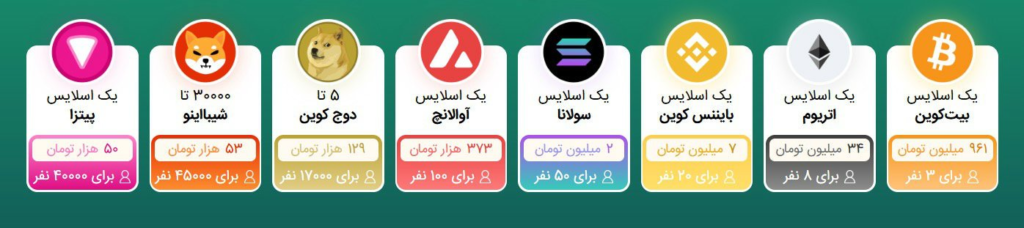 کمپین اسلایس دقیقاً در همین نقطه تلاقی شکل گرفت. کاربران اسنپفود میتوانستند با انجام مأموریتهای ساده مانند ثبتنام در بیتپین یا سفارش غذا، شانس خود را برای شرکت در گردونه شانس ۸ میلیاردی امتحان کنند. جوایز این گردونه شامل رمزارزهای محبوبی همچون بیت کوین، اتریوم و شیبا است که به قطعات کوچکتر تقسیم شدهاند تا تعداد بیشتری از کاربران بتوانند برنده شوند.