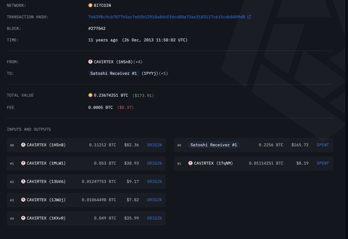 گروگان همچنین اشاره کرده که ممکن است ۵۰۰ بیت کوینی که در سال ۲۰۱۰ به آدرس 1pYYj ارسال شده است، به شخص دیگری بوده باشد. در این صورت، ما با یک پرداخت جدید از طرف ساتوشی روبرو خواهیم بود که برای اولین بار مستند شده است.