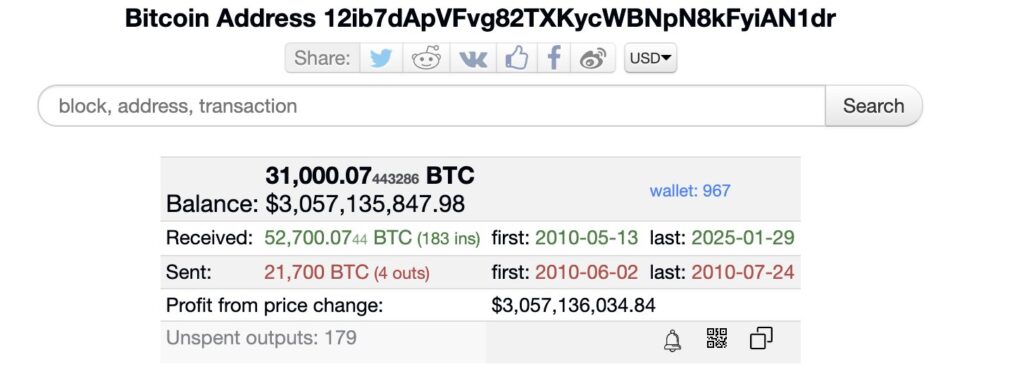 آدرس 1pYYj همچنین به یکی از بزرگترین آدرسهای فعال بیت کوین، یعنی 12ib، که در حال حاضر ۳ میلیارد دلار بیت کوین در اختیار دارد، مرتبط است. این شواهد به تقویت احتمال ارتباط آدرس 1pYYj با ساتوشی یا یک کاربر اولیه بیت کوین کمک میکند.