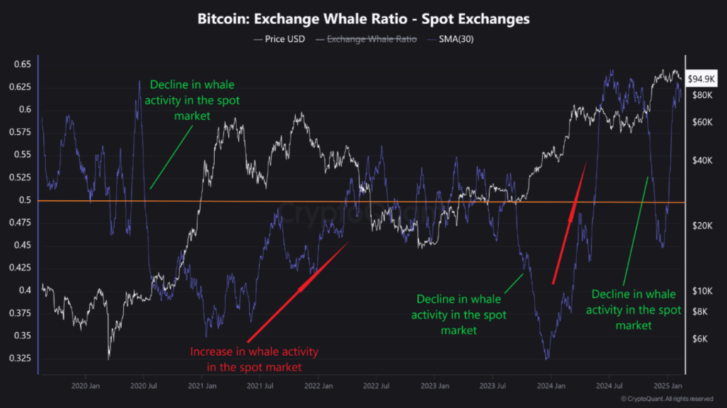 نسبت معاملات نهنگهای بیت کوین – منبع: CryptoQuant