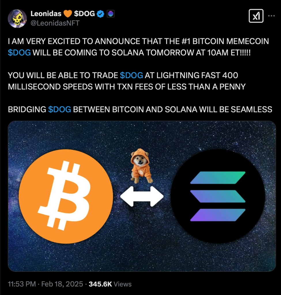 اطلاعیه خالق DOG مبنی بر انتشار روی شبکه سولانا – منبع: حساب LeonidasETF در X