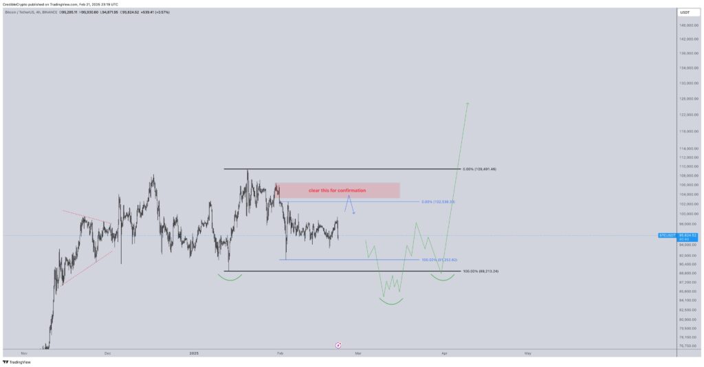 تحلیل نمودار قیمت بیت کوین – منبع: حساب Credible Crypto در X