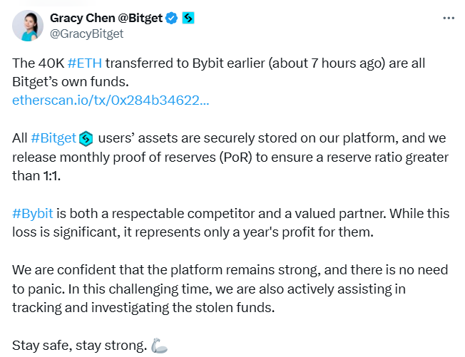 در همین حال، برخی از رهبران صنعت کریپتو و صرافیهای دیگر نیز به سرعت به کمک بایبیت آمدند. از جمله این کمکها میتوان به انتقال ۵۰ هزار واحد اتریوم از صرافی بایننس، ۴۰ هزار واحد از صرافی بیتگت و ۱۰ هزار واحد از دو جون (Du Jun)، یکی از بنیانگذاران اچتیایکس گروپ (HTX Group) اشاره کرد. این حمایتها نشاندهنده همبستگی جامعه کریپتو برای پشتسر گذاشتن این بحران است.