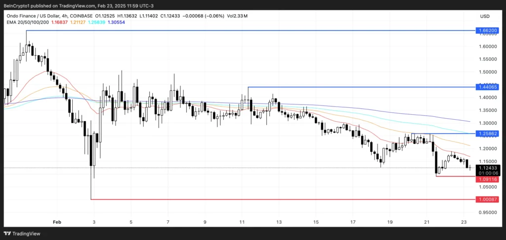 اگر روند نزولی ادامهدار باشد، ممکن است ONDO حمایت ۱.۰۹ دلار را آزمایش کند و در صورت شکست این سطح، احتمال افت قیمتش تا ۱ دلار وجود دارد. اما اگر آندو بتواند روند خود را معکوس سازد، مقاومت ۱.۲۵ دلار اولین مانع خواهد بود. در صورت عبور از این سطح، تارگت قیمت ۱.۴۴ و در نهایت ۱.۶۶ دلار خواهد بود، که اولینبار از اواخر ژانویه است که ONDO از سطح ۱.۵ دلار عبور میکند.