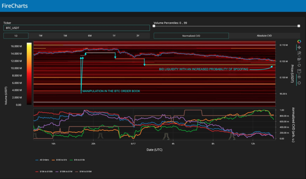 این نوع دستکاری یا «اسپوفینگ نقدینگی» معمولاً زمانی رخ میدهد که معاملهگران بزرگ قصد دارند جهت قیمت را به شکل مصنوعی تغییر دهند. Material Indicators همچنین اشاره کرد که اگر قیمت بتواند از سطح ۱۰۸٬۰۰۰ دلار عبور کند، مسیر تا ۱۱۰٬۰۰۰ دلار باز خواهد شد.