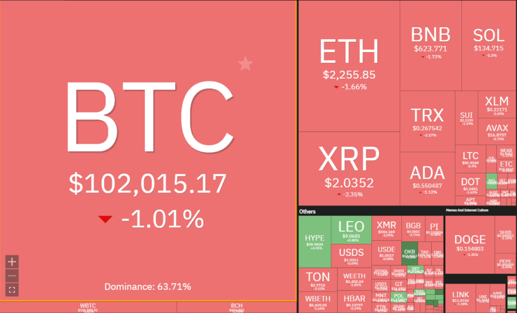 هیت مپ عملکرد بازار ارز دیجیتال – منبع: کوین ۳۶۰