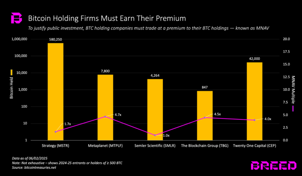 شرکتهای خزانهداری بیت کوین و MNAV مربوط به آنها – منبع: Breed
