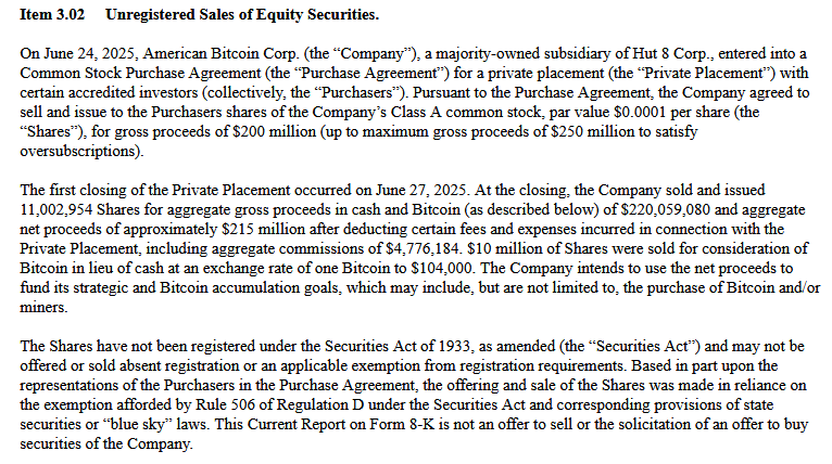 شرکت امریکن بیت کوین (American Bitcoin) که تحت مالکیت اکثریتی شرکت استخراج رمزارز هات ۸ (Hut 8) قرار دارد، ۲۲۰ میلیون دلار سرمایه جذب کرده تا تجهیزات استخراج بیت کوین خریداری کند و موجودی خزانه BTC خود را افزایش دهد.