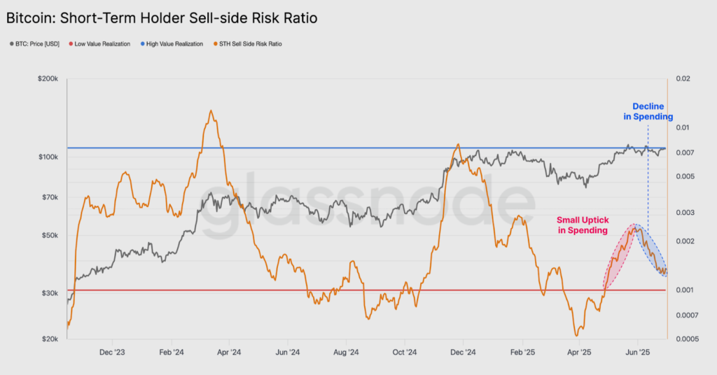 نسبت ریسک هولدرهای کوتاه مدت سمت فروش بیت کوین – منبع: گلسنود