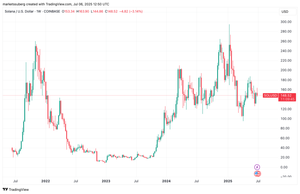 نمودار هفتگی قیمت سولانا – منبع: تریدینگ ویو