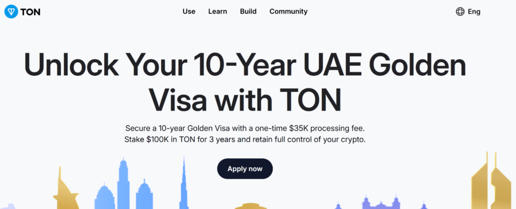 بنیاد تون روز شنبه در اطلاعیهای اعلام کرد هولدرهای تون کوین میتوانند با استیک کردن داراییهای خود، ویزای طلایی امارات دریافت کنند.