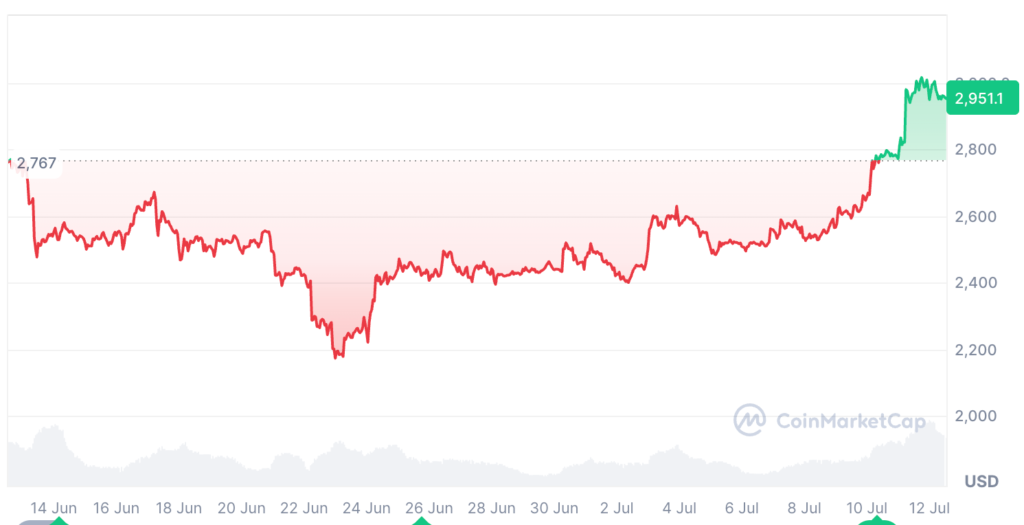 عملکرد ۳۰ روزه قیمت اتریوم – منبع: CoinMarketCap