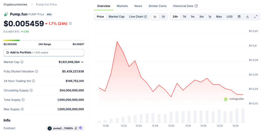 طبیعی است که قیمت این توکن در طول روز و به دلیل تلاش سرمایهگذاران خرد برای کسب سود، نوسان داشته باشد. پس از اعلام آغاز معاملات عمومی توسط Pump.fun، قیمت PUMP بهطور چشمگیری افزایش یافت اما بهسرعت دوباره کاهش پیدا کرد.