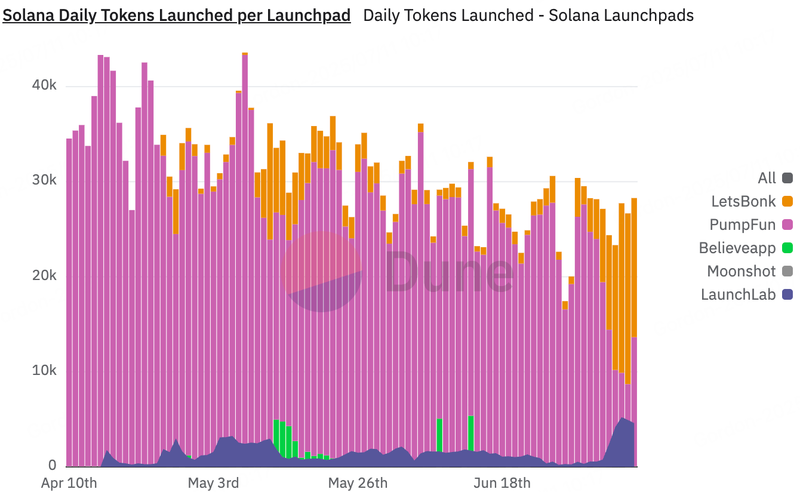 علاوه بر این، اگرچه Pump.fun پیش از این موفقیتهایی را تجربه کرده بود، اما در حال از دست دادن سهم بازار و فعالیت خود بوده است که ممکن است نشاندهندۀ مشکلاتی در حفظ پایگاه کاربری و تضمین تقاضای منظم برای توکن باشد.
