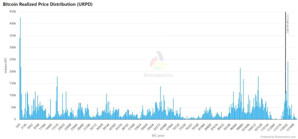 نمودار URPD بیت کوین؛ منبع: بی جیامتریک