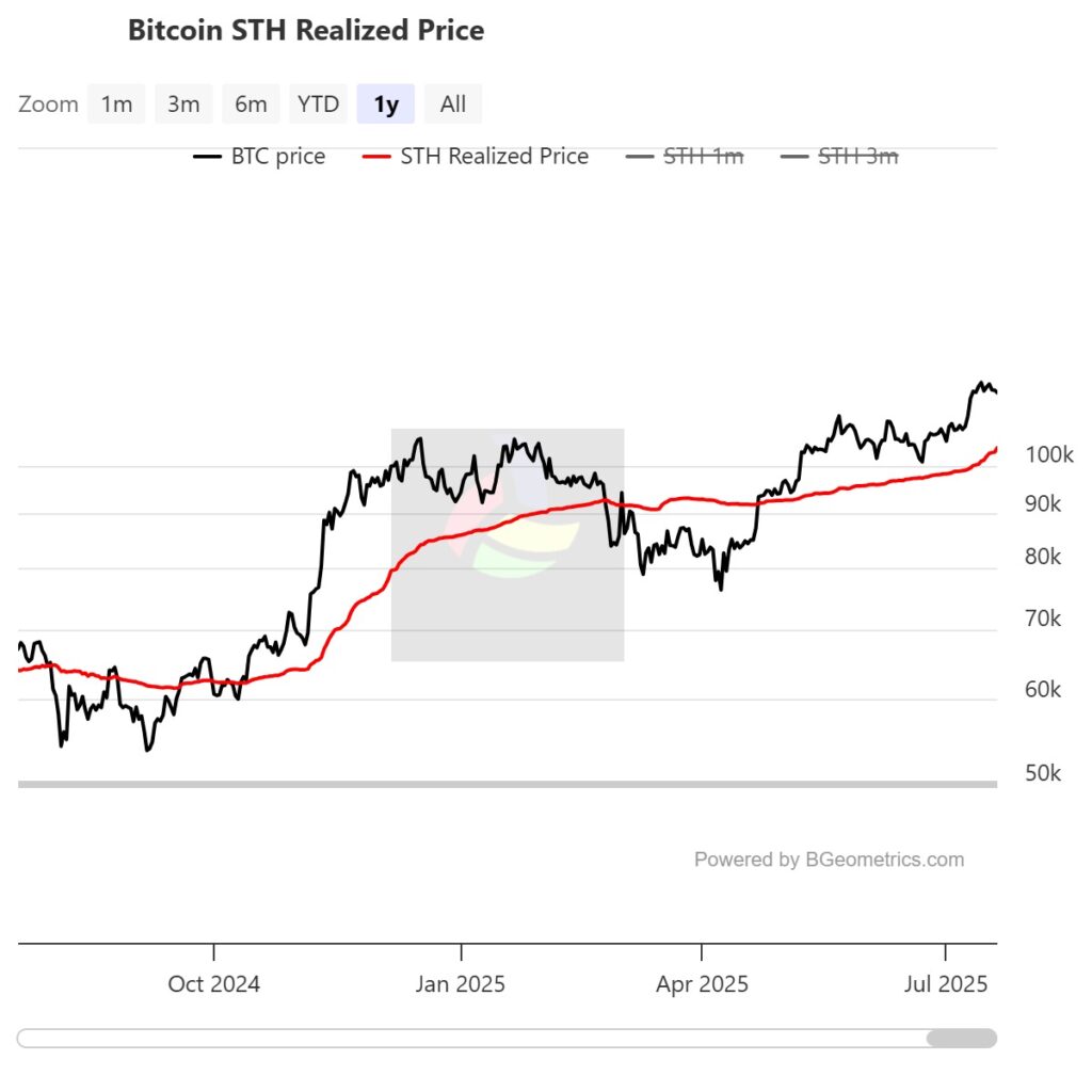 قیمت تحقق یافته هولدرهای کوتاهمدت؛ منبع: بی جیامتریک