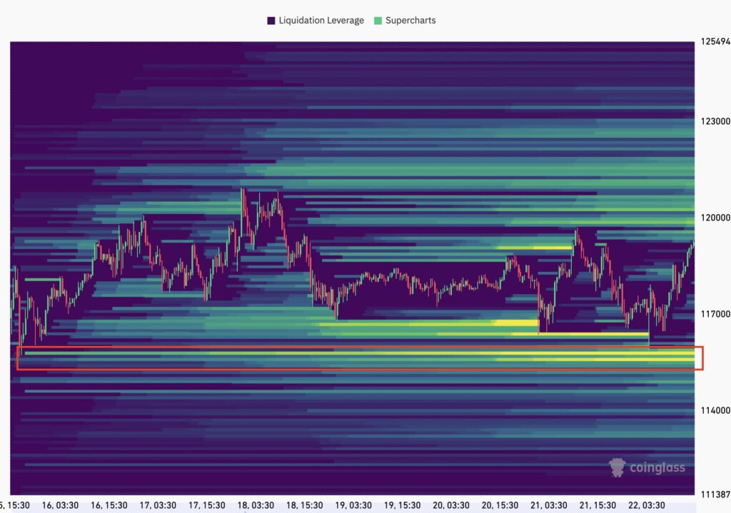نقشه نقدینگی بیت کوین نیز این احتمال را تأیید میکند؛ چرا که سفارشهای خرید در محدوده ۱۱۵,۰۰۰ تا ۱۱۶,۱۰۰ دلار به صورت خوشهای انباشته شدهاند. آلفا بیتیسی توضیح داد:
