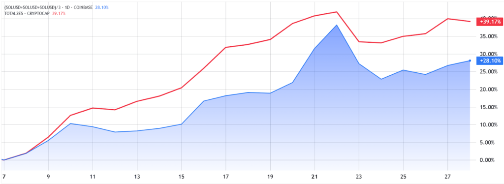 عملکرد قیمت سولانا در مقایسه با مارکت کپ آلت کوینها – منبع: TradingView