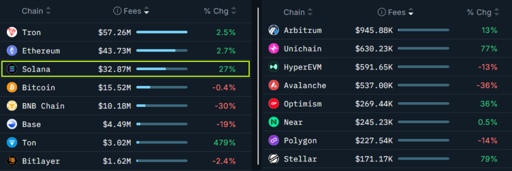 با این حال، نشانههایی از بهبود دیده میشود. کارمزدهای شبکه سولانا در ۳۰ روز گذشته ۲۷٪ افزایش یافته است، در حالی که بسیاری از بلاکچینهای رقیب با رکود یا کاهش مواجه بودهاند. برای مقایسه، کارمزدهای زنجیره BNB حدود ۳۰٪ کاهش یافته و بیس (Base) – لایه ۲ اتریوم – نیز با ۱۹٪ افت روبرو بوده است.