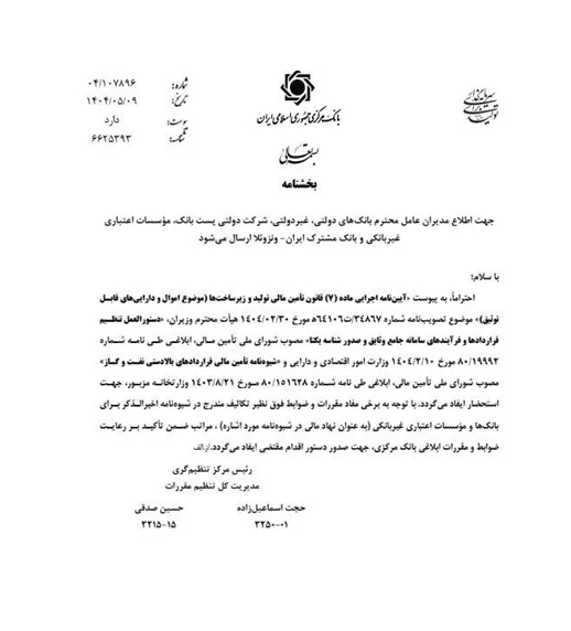 بانک مرکزی در تازهترین اقدام خود برای تسهیل دسترسی به منابع مالی، آییننامه اجرایی ماده ۷ قانون تامین مالی تولید و زیرساختها را به شبکه بانکی کشور ابلاغ کرد؛ اقدامی که دامنه وثایق قابلپذیرش برای دریافت تسهیلات بانکی را به طرز بیسابقهای گسترش میدهد.