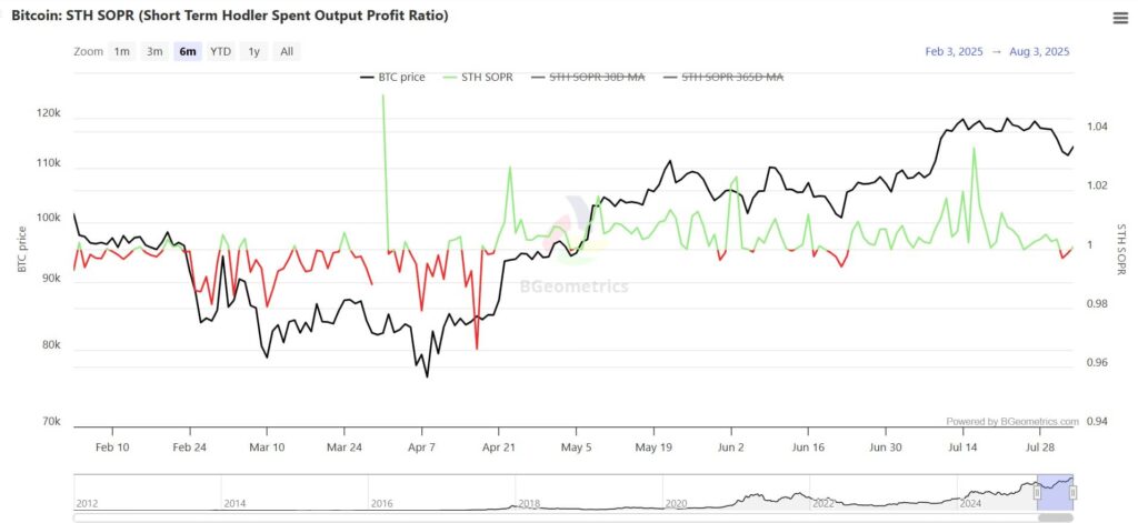 شاخص SOPR هولدرهای کوتاهمدت؛ منبع: بی جیامتریک