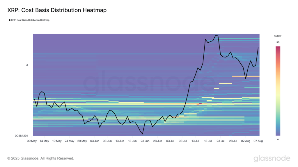 نقشه حرارتی توزیع هزینه XRP – منبع: Glassnode