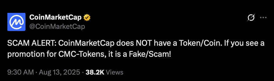کوین مارکت کپ در این اطلاعیه تأکید کرده است که این پلتفرم هیچ توکن یا ارز دیجیتال بومی رسمی راهاندازی نکرده و تحت مدیریت ندارد.