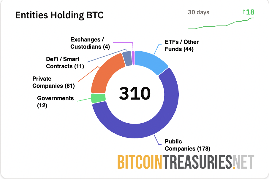 نهادهای هولدر بیت کوین – منبع: BitcoinTreasuries