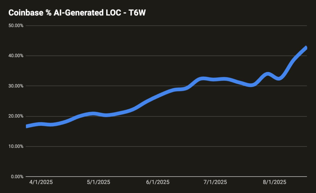 تغییر در میزان کد تولید شده توسط هوش مصنوعی – منبع: حساب Brian Armstrong در X