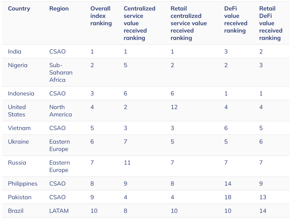 شاخص جهانی پذیرش ۲۰۲۴ – منبع: Chainanalysis