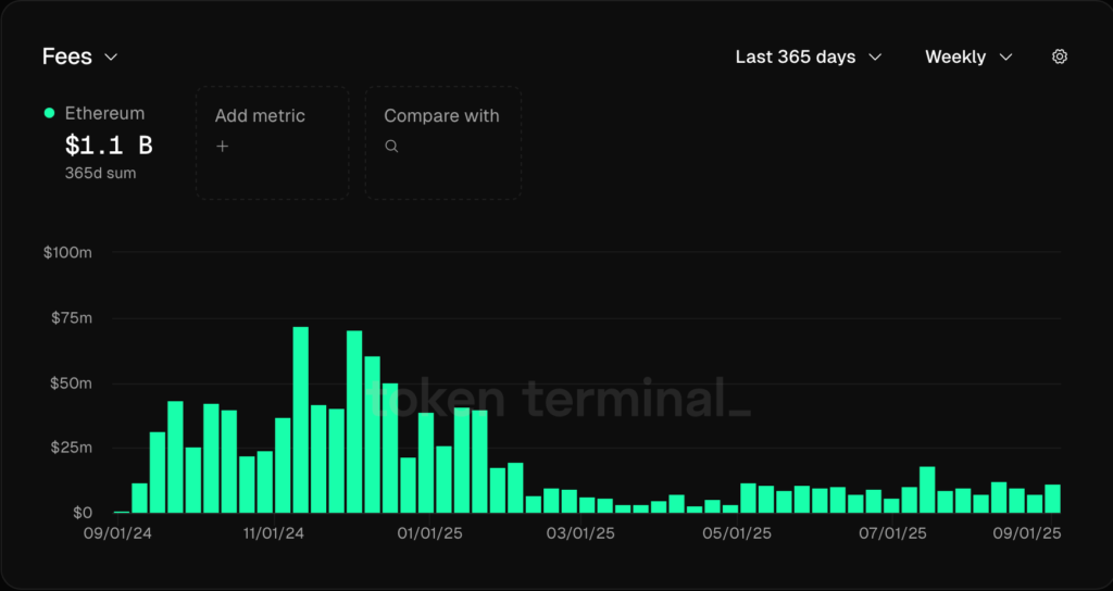 در اکوسیستم اتریوم، بحث کارمزدهای سکوئنسرها همواره جنجالی بوده است. برخی معتقدند شبکه اتریوم باید سهم بیشتری از این کارمزدها دریافت کند. طبق دادههای توکن ترمینال (Token Terminal)، اتریوم طی سال گذشته بیش از ۱.۱ میلیارد دلار کارمزد جمعآوری کرده، اما این میزان از فوریه تاکنون کاهش قابلتوجهی داشته است.