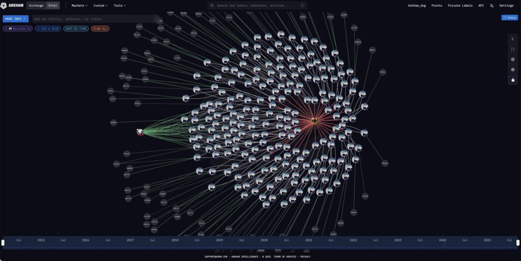 خوشههایی از کیف پولهای بیت کوینی که آرکام ادعا میکند به Movie2k مربوط میشود – منبع: حساب Arkham در X