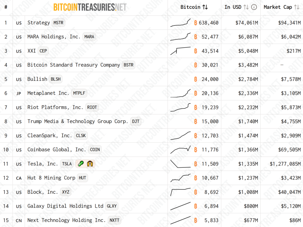 بزرگترین شرکتهای هولدر بیت کوین – منبع: BitcoinTreasuries.NET