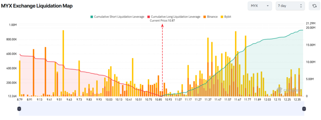 لیکوییدیشن مپ آلت کوین MYX – منبع: Coinglass