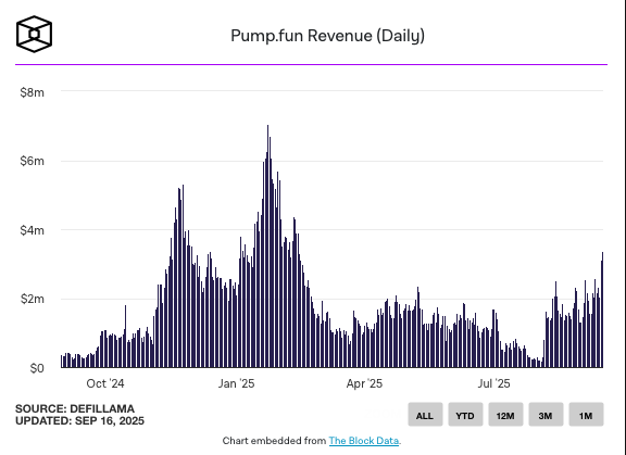 پامپ فان (Pump.fun) – پلتفرم ساخت میم کوین بر بستر سولانا – در ۲۴ ساعت گذشته درآمدی بیشتر از صرافی معاملات پرپچوال هایپرلیکویید (Hyperliquid) به ثبت رسانده است.