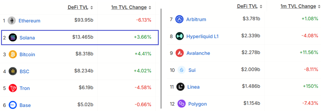رتبهبندی بلاکچینها بر اساس میزان TVL – منبع: DefiLlama