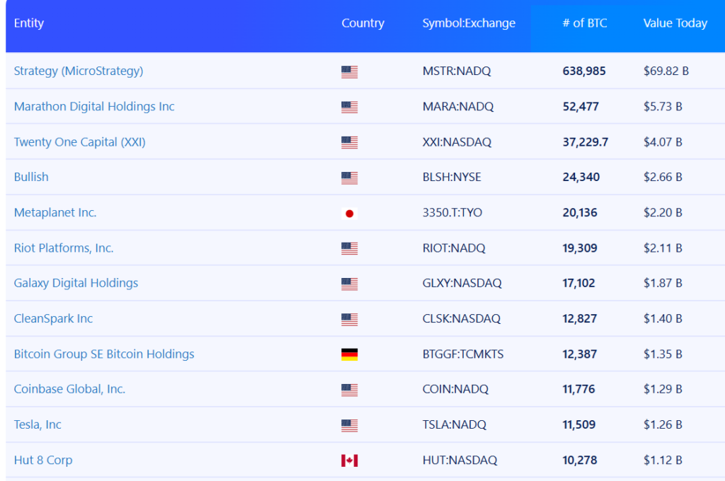 بزرگترین هولدینگهای بیت کوین توسط شرکتهای سهامی عام – منبع: بیت بو